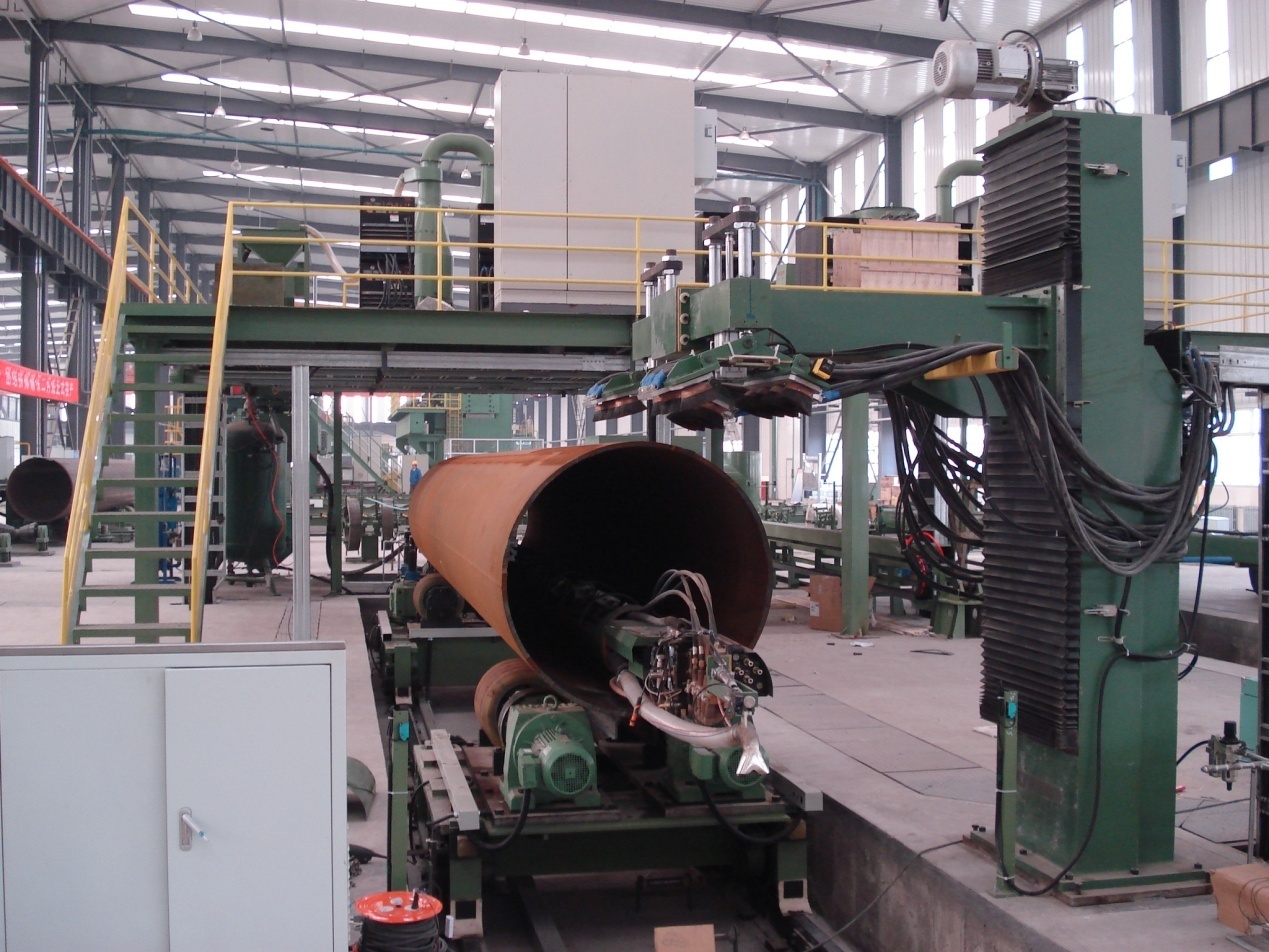 ● 2套(3套)四絲或五絲外焊:內焊之后,在鋼管外部進(jìn)行(4絲或5絲)埋弧焊接。