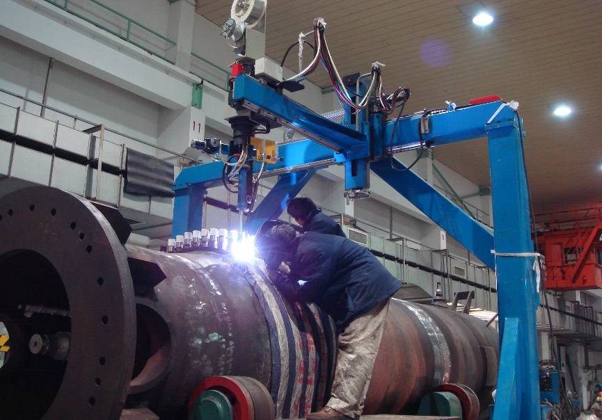 用途:主要用于軋輥、輸送輥等回轉體進(jìn)行表面進(jìn)行特殊表層的堆焊生產(chǎn)。最大回轉直徑:800mm,最大工件長(cháng)度:3000mm,最大工件重量:3T。